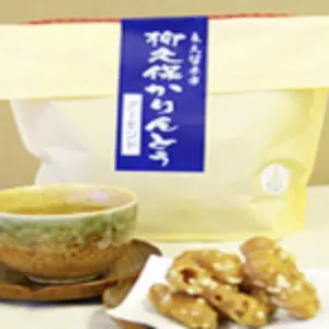東久留米市で採れた『幻の小麦』柳久保小麦使用しています。沖縄産黒糖を使用した一品です。沖縄産黒糖100%の糖蜜がかかっており、あっさりと軽い食感が魅力です。従来のかりんとうよりも固くないので、年配の方にもおすすめです。食べやすいサイズ感で手土産などにも向いています。