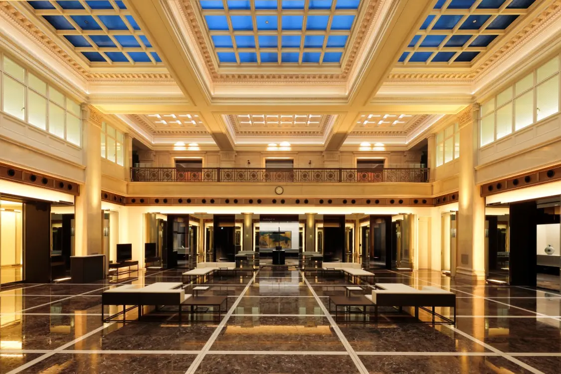 昭和期建築として初めて国の重要文化財指定を受けた明治生命館。名建築の意匠を楽しみながら、国宝や重要文化財を含む東洋美術の名品の数々を鑑賞できます。豊富なコレクションを年に数回のテーマ展で紹介しており、いつ来ても様々な作品に出会えます。