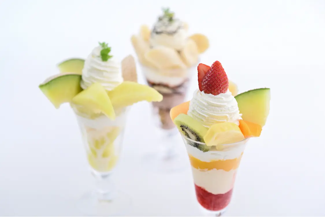 世界中から集めた選りすぐりのフルーツをたっぷりと使用した贅沢なパフェ。フルーツパティシエの手により手早くカッティングすることで、旬のおいしさを100%引き出した味わいが楽しめます。