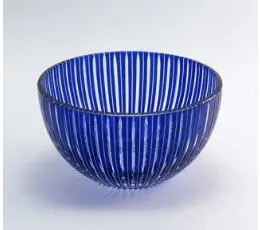太い線と細い線が交互に重なる伝統の縞文様の鉢皿です。被せ色と透明と艶消しの交互の縞が、美しい光と影を映し出します。普段使い用にそうめんやサラダを入れても食事が映えます。スタイリッシュなデザインで料理の邪魔をしないので、和食だけでなく洋食にも使える万能さがウリの器です。