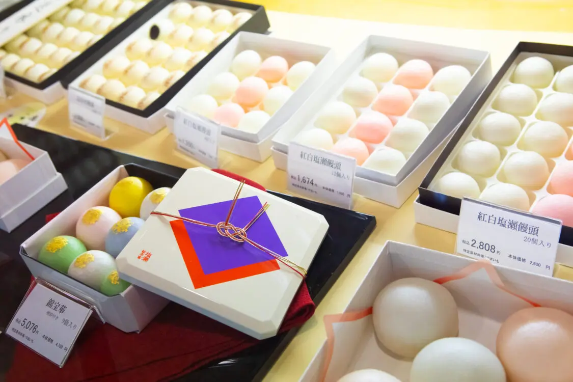 創業者である林淨因は、肉食ができない禅宗の僧侶のために、中国の「マントゥ」をヒントに小豆の餡を皮に包んで蒸したものを提供。この饅頭の元祖が、小豆を好んで食べていた日本人の口に合い、上流階級の人々の間で広まりました。饅頭を大層気に入った後村上天皇からは宮女を賜り、その御礼に紅白饅頭を諸方に贈ったことから、お祝い事に紅白饅頭を贈る習慣が生まれたと言われています。