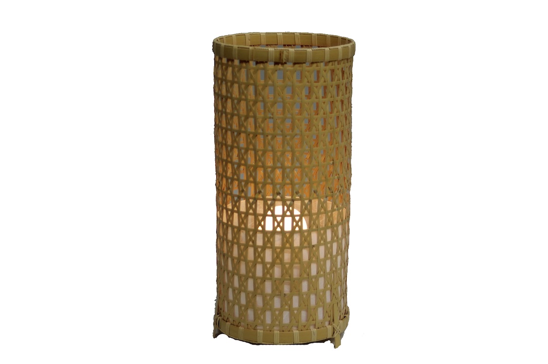 細かな竹の網目から優しく光が漏れるおしゃれな電気スタンド。電源は単三電池三個のみのコードレスタイプなので、どこでも設置することができます。和室やリビングのインテリアとしても、玄関や寝室の間接照明としても、存在感を発揮する照明器具です。受注生産品です。