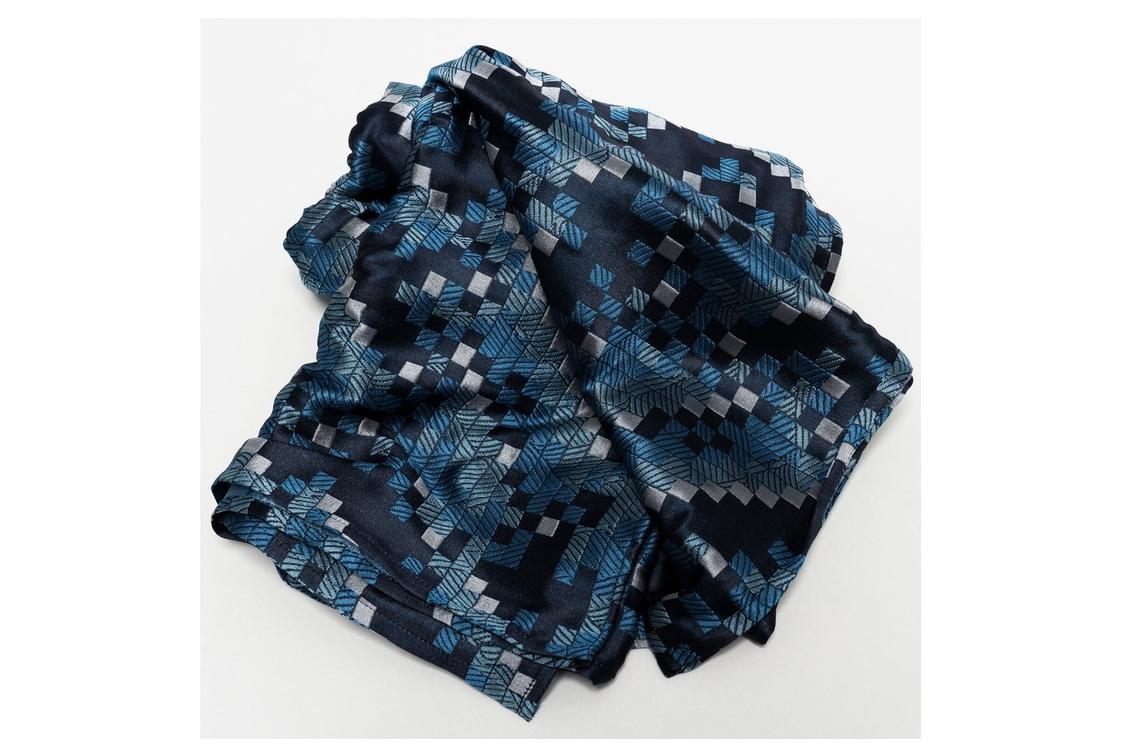 伝統的なモチーフ「鱗紋」をAIに再解釈させ、テキスタイルに仕上げた「伝統」と「革新」がコラボレートしたアイテム。 丹後ちりめんそのものの魅力を、肌で感じられるストールです。
