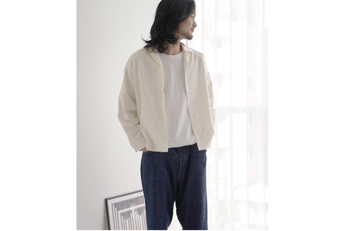 高級織物「丹後ちりめん」用のシャトル織機で織られたシルク100%。シャトル織機でちりめんよりも細い糸でシャツ生地を織ることによって、糸同士は高密度でありながら、空気を含んだようなふくらみを保っています。上品ながら肩の力が抜けたデザインが日常に寄り添います。