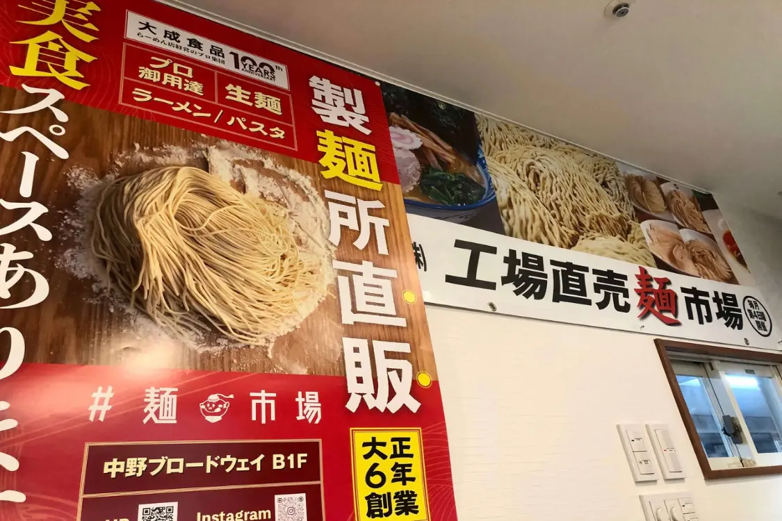 直営店では、ラーメンの麺だけでなく、パートナー企業と共同開発したラーメン用食材やパスタなどの他の麺も購入できます。ラーメンのトッピングなどもすべて購入できるので、、家庭で本格的なラーメンを創りたい人にも人気です。直営店の一つである「麺市場 中野ブロードウェイ店」では、工場直送の業務用麺が購入できるだけでなく、テイスティングスポットも併設しています。店内でラーメンやパスタを試食することが可能です。麺の記念日にちなんだイベントやお得なタイムセールなども実施しています。