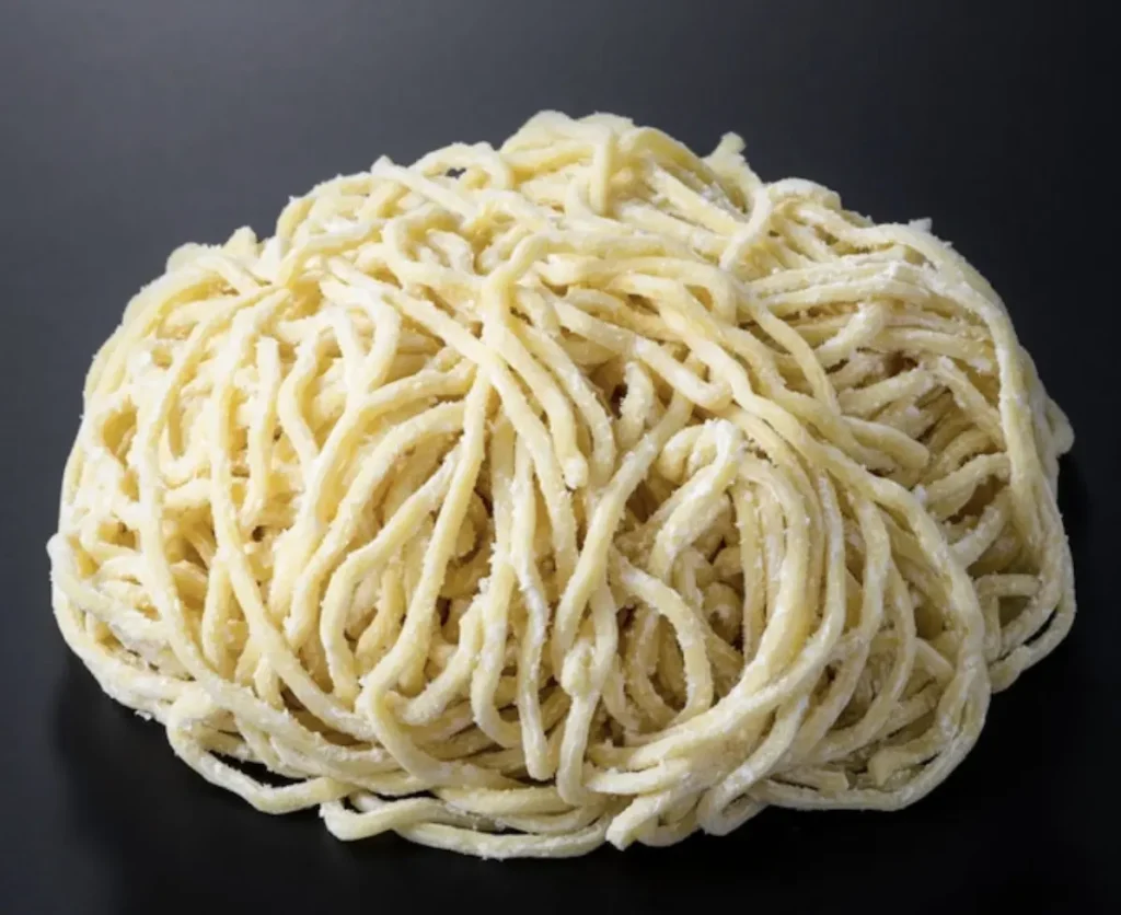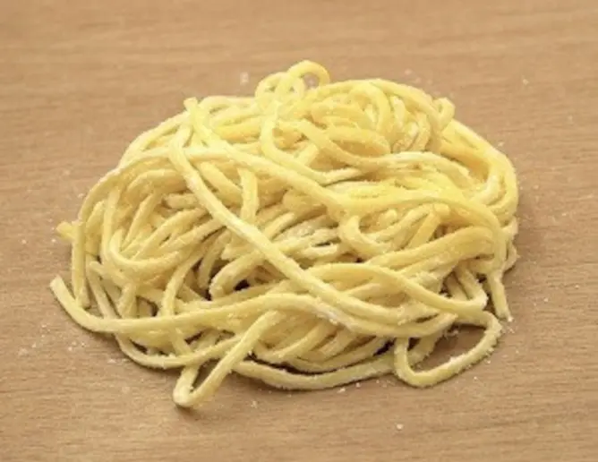 大成食品(中野店)のリングイネは、ロール式製法で作られています。製麺の際に熱が加わらないため、水分を含んだ小麦本来の旨みと食感を損なわず、強力合成保存料であるプロピレングリコール、ソルビット等を一切使用していません。手打ち風のコシとモチモチの食感が楽しめます。