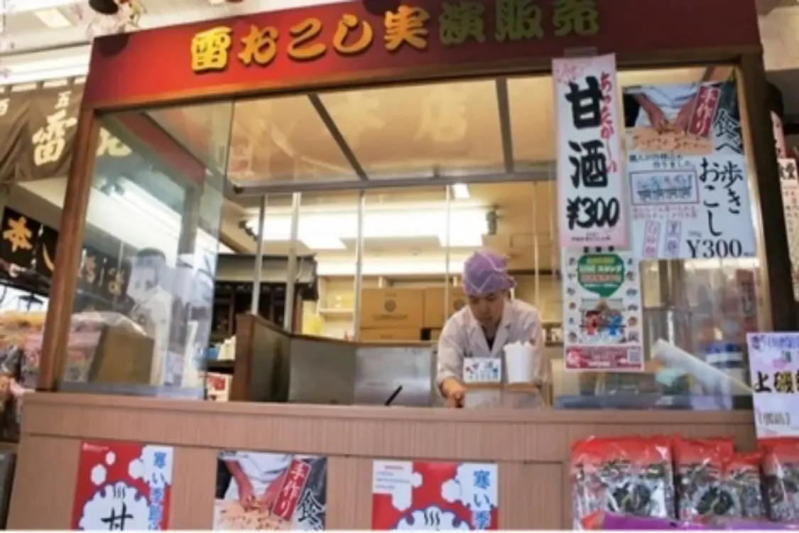 「雷おこし」の名称は雷門に由来し、雷除けや観音様参詣のお土産として人気を博してきました。原材料に選び抜かれたお米を用い、砂糖を主体としたソフトな仕上がりが江戸前のおこしの特徴で、近年はよりソフトで優しい甘さの新商品を展開しています。ピーナッツやココナッツといった副原料を添加した新しい味も次々と開発しています。江戸時代から続く伝統を守りながらも新しい時代に合わせた商品開発で長きにわたり愛されている老舗です。